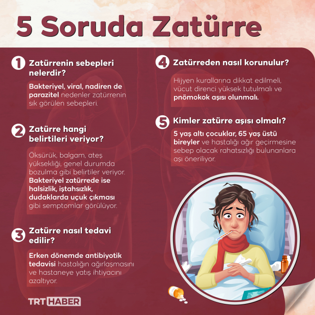 Akciğer dokusunun iltihaplanmasıyla ortaya çıkan zatürrede tedaviye erken başlanmazsa özellikle risk gruplarında hayati tehlike belirebiliyor. Bu nedenle 5 yaş altındaki çocuklar, ileri yaş grubundakiler ve kronik rahatsızlığı olanlar risk grupları arasında sayılıyor.