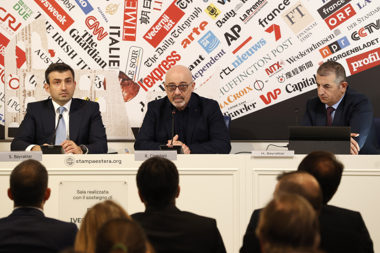 Cingolani, Selçuk Bayraktar ve Haluk Bayraktar, daha sonra Roma Yabancı Basın Derneği'nde ortak basın toplantısı düzenledi.