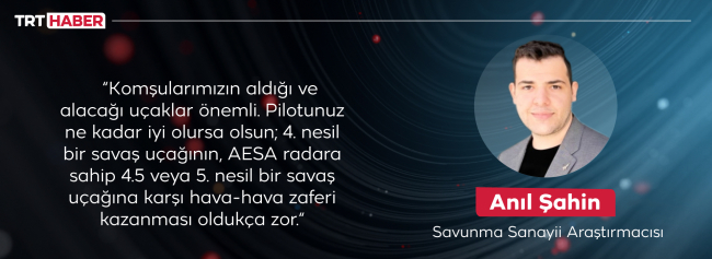 Typhoon, Rafale veya F-16 Blok 70 gibi 4.5 nesil ya da direkt F-35 gibi 5. nesil savaş uçaklarına geçiş yapan komşularımızın olması Anıl Şahin’in de üzerinde durduğu bir konu. “Bu durum hava-hava muharebelerindeki dengeyi değiştiriyor” dedikten sonra devam ediyor: