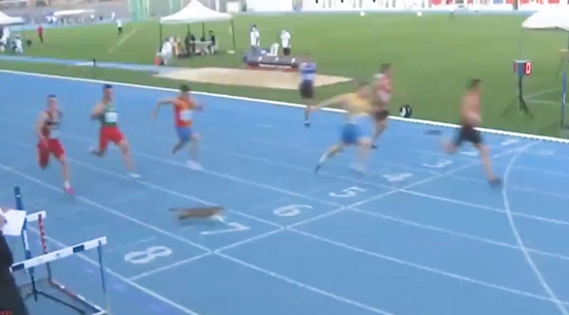 Yarış, nefes nefese bir mücadeleye sahne olurken, bir kedi yarışa dahil oldu. Kısa süre şaşkınlık yaşayan sporcular yarışa devam etti.