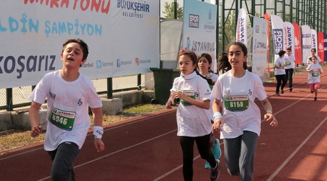 Maraton kapsamında 10-13 yaş grubundaki çocuklar 250'şerli 6 grup halinde 900 ve bin 500 metre koştu. 0-3 yaş grubu çocuklar ise aileleriyle 300 ve bin 500 metrelik parkurda yarıştı.