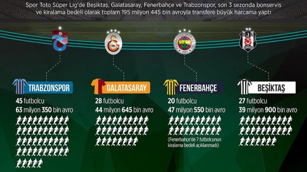 Türk futbolunda "4 büyükler" olarak anılan Beşiktaş, Galatasaray, Fenerbahçe ve Trabzonspor, son 3 sezonda transfere büyük miktarlarda para harcadı.