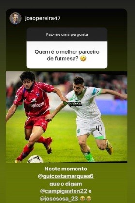 Portekizli oyucu ’en iyi ortak kim’ sorusuna Guılherme ile birlikte olan fotoğrafını paylaşırken, takım kaptanı Sosa ise Campi ile ayak tenisi oynadıkları anın fotoğrafını paylaşarak Pereira’ya yanıt verdi.