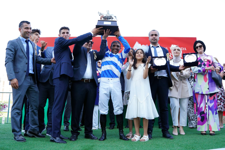 Veliefendi Hipodromu'nda gerçekleştirilen ve yaklaşık 40 bin yarışseverin izlediği koşunun ardından pistin kenarında kurulan platformda jokeye, atın sahibi ile antrenörüne ödülleri takdim edildi.