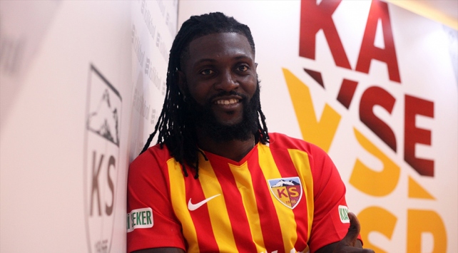 Kayserispor Kulübü Başkanı Erol Bedir'in katılımıyla kulüp tesislerinde düzenlenen törende 35 yaşındaki Adebayor, kendisini 1 yıllığına sarı-kırmızılı renklere bağlayan sözleşmeye imza attı.