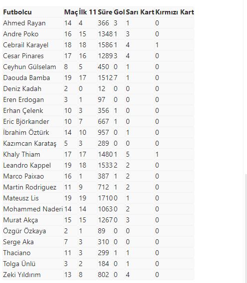 Altay'da 2021-2022 sezonunun ilk devresinde forma giyenlerin performansları şöyle: