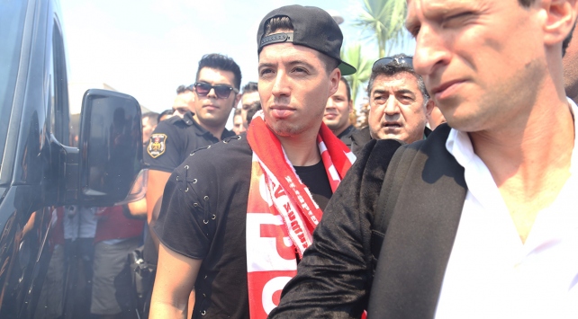 Antalya Havalimanı'na gelen yıldız futbolcuyu, Antalyaspor Kulübü yetkilileri ile kalabalık bir taraftar grubu karşıladı.