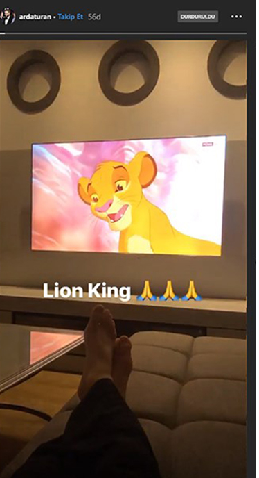 32 yaşındaki yıldız oyuncu, Instagram hesabından "Aslan Kral' adlı animasyon filmini izlerken çektiği bir videoyu gönderi olarak paylaştı. Sarı-kırımızı ekiple ilişkilendirilen ve "Arda Galatasaray'a dönecek" iddialarını daha da alevlendiren bu gönderi, sosyal medyada gündem oldu.