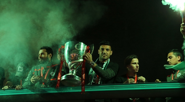 Yüksek Hızlı Trenle (YHT) Konya Garı'na gelen yeşil-beyazlı ekibi karşılayan kalabalık taraftar grubu takımları lehine slogan attı. Kupayı Konya'ya getiren futbolcularla hatıra fotoğrafı çektiren taraftarlar, ellerindeki bayrak ve meşalelerle kupa şampiyonluğunu kutladı.