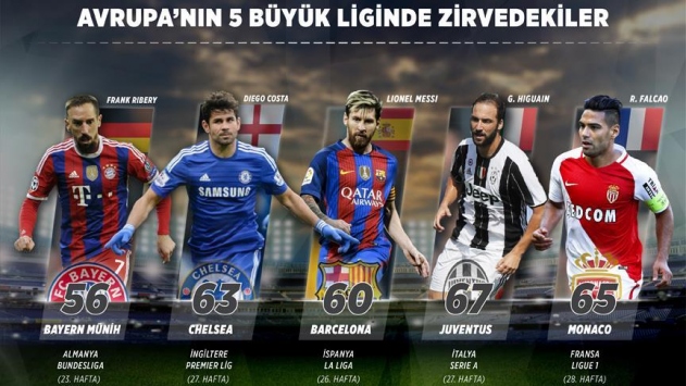 İngiltere'de Chelsea, Almanya'da Bayern Münih, İtalya'da Juventus, Fransa'da da Monaco, zirvedeki yerlerini bırakmadı. İspanya'da ise Barcelona, liderliği Real Madrid'den aldı.