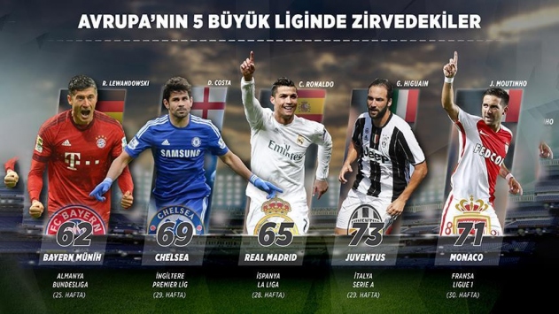 İngiltere'de Chelsea, İspanya'da Real Madrid, Almanya'da Bayern Münih, İtalya'da Juventus ve Fransa'da Monaco, zirvedeki yerlerini korudu.