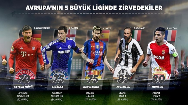 İngiltere'de Chelsea, Almanya'da Bayern Münih, İtalya'da Juventus ve Fransa'da Monaco, zirvedeki yerini korudu.