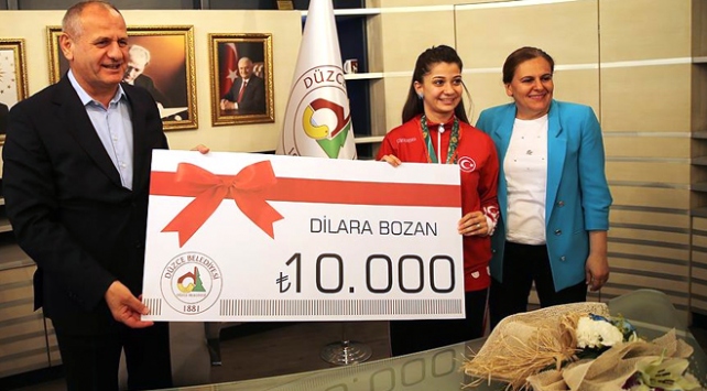 Azerbaycan'ın başkenti Bakü'de 12-22 Mayıs'ta düzenlenen 4. İslami Dayanışma Oyunları'nda kata branşında altın madalya kazanan Dilara Bozan, Düzce Belediye Başkanı Mehmet Keleş'i makamında ziyaret etti.
