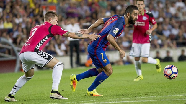 Barcelona'da teknik direktör Luis Enrique maça sürpriz bir 11 ile başladı. Sakat olan Ter Stegen'in yerine Cillessen Barcelona kalesini korurken, Lionel Messi, Luis Suarez, Andres Iniesta, Jordi Alba ve Rafinha yedek oturdu. Barcelona'nın ileri üçlüsünde Arda Turan, yeni transfer Paco Alcacer ve Brezilya'dan dönen Neymar yer aldı.