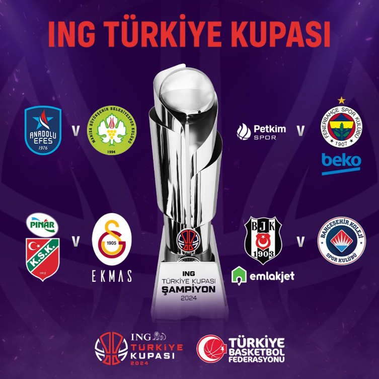 Dörtlü Final organizasyonu ise 16-18 Şubat'ta Konya'da gerçekleştirilecek. ING Türkiye Kupası'nda tüm karşılaşmalar, TRT Spor'dan naklen yayımlanacak.