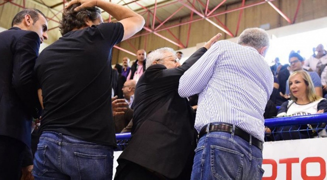 Yakın Doğu Üniversitesi ile Fenerbahçe takımları arasında oynanan Bilyoner.com Kadınlar Basketbol Ligi play-off final serisi ilk maçı öncesi protokol tribününde kavga çıktı.