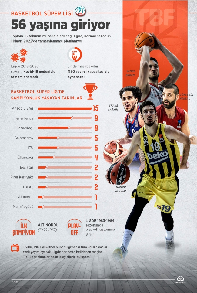 Basketbol Süper Ligi'nde şampiyon olan takımlar şöyle: