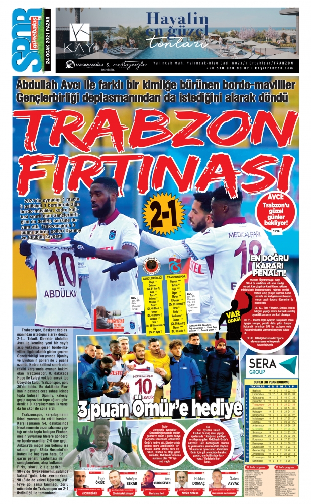 Trabzon’da yerel gazeteler, Trabzonspor’un 3 puan kazandığı Gençlerbirliği maçının ardından bordo-mavili takımı kutlayıp, oynanan futbolun keyif verdiğine dikkat çekti.