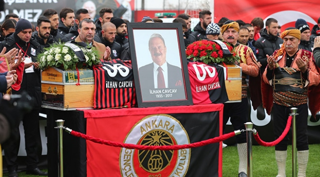 Geçirdiği beyin kanaması sonrasında üç gün önce hastaneye kaldırılarak yoğun bakım ünitesine alınan ve dün 81 yaşında vefat eden Cavcav'ın cenazesi öncesinde, Beştepe İlhan Cavcav Tesisleri'nde tören yapıldı.