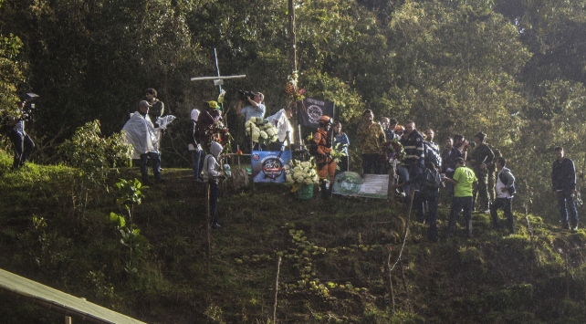 Medellin kentindeki havaalanına yakın bir noktada düzenlenen anma törenine katılan takım kafilesindeki futbolcular, uçak enkazının bulunduğu yere çelenk ve Brezilya bayrağı bıraktı.