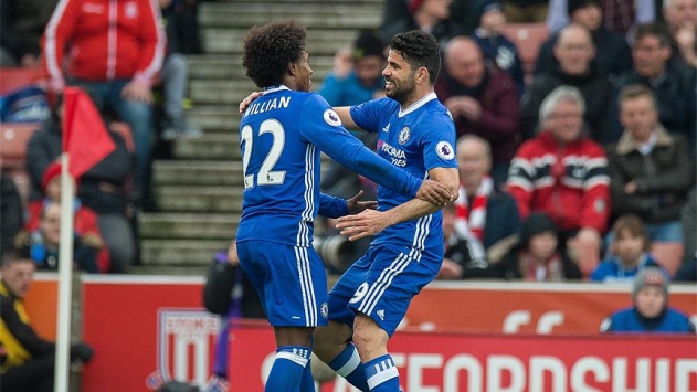 İngiltere Premier Lig'de lider Chelsea, deplasmanda Stoke City'yi son dakikalarda bulduğu golle 2-1 mağlup ederek şampiyonluk mücadelesinde yoluna kayıpsız devam etti.