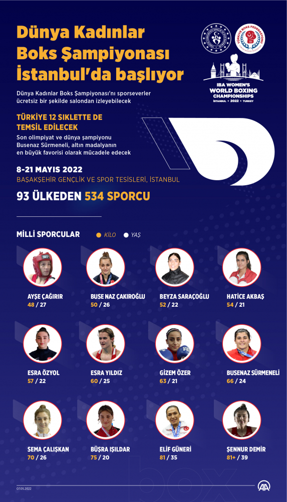 Türkiye bir büyük organizasyona daha İstanbul'da imza atacak. Dünyanın en iyi kadın boksörleri, 21 Mayıs'a kadar sürecek şampiyonada Başakşehir Gençlik ve Spor Tesisleri'nde madalya mücadelesi verecek.