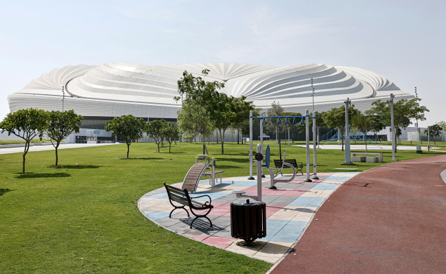 Doha'nın güneyinde yer alan 40 bin kişilik stat, bölgedeki erkeklerin başlıklarını yerinde tutmak için kullandıkları "Gahfiya"dan esinlenerek tasarlandı.