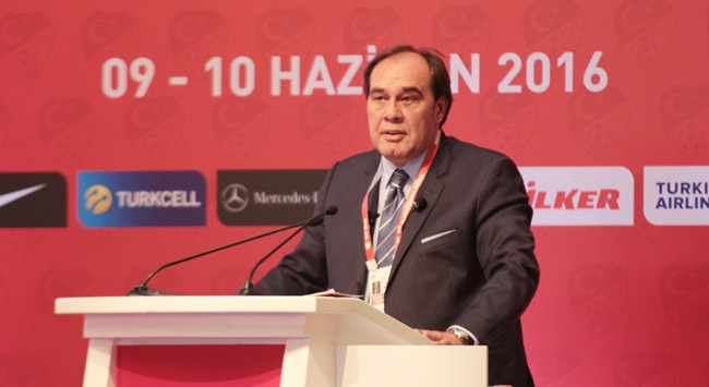 "15 Temmuz'da yaşanan hain darbe girişiminin ardından bir olan Türkiye Cumhuriyeti vatandaşlarının, bu birlik ve beraberliği toplumun her kesiminde göstermeye devam etmelerini bekliyoruz. Toplumun en fazla gözü önünde olan yerler arasında yer alan stadyumlarımız, bu birlik ve beraberliğin en iyi şekilde gösterileceği yerlerdir. Tüm kulüplerimizin taraftarlarını bu birlik ve beraberlik bilinciyle hareket etmeye davet ediyorum. Unutmayalım, ülkemizin en popüler sporu olan futbol, birlik ve beraberliğimizi tüm dünyaya göstereceğimiz en önemli mecradır. Bu vesileyle, tüm futbol ailesini olası provokasyonlardan uzak durmaları konusunda uyarmayı bir görev biliyorum."