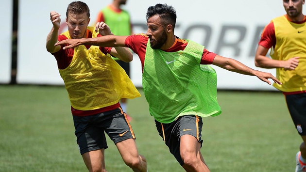 Galatasaray Futbol Takımı yeni sezon hazırlıkları kapsamında İsviçre'de başladığı kampın ilk gününde çift antrenman yaptı.