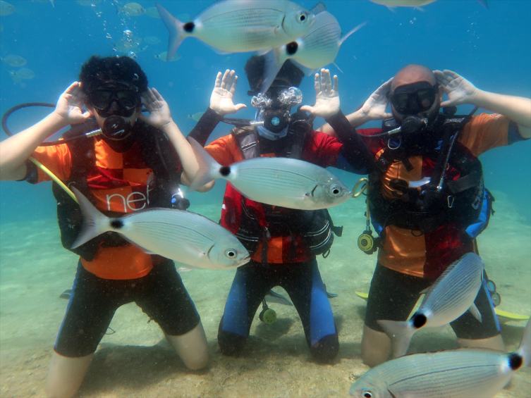 Fethiye Galatasaray Taraftarlar Derneği yetkilileri, Galatasaray'ın şampiyonluğunu su altında kutlamak için ilçede dalış okulu işleten Önder Diktaş'a ulaştı.