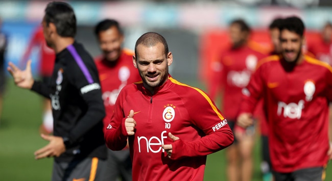 Spor Toto Süper Lig'de 22 Ekim Cumartesi günü Trabzonspor'la karşılaşacak Galatasaray'da, Wesley Sneijder sevinci yaşanıyor.