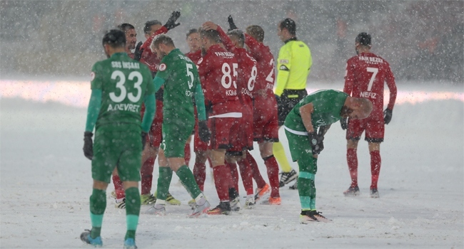 Bu arada sabah saatlerinden itibaren kentte etkili olan kar yağışı nedeniyle maça saatler kala temizlik çalışması yapıldı. Maç sırasında da zaman zaman saha temizlenerek mücadeleye devam edildi.