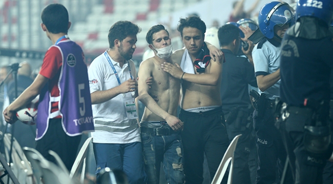 Sahaya atılan birçok yanıcı madde nedeniyle oyun birden fazla kez durmuştu.