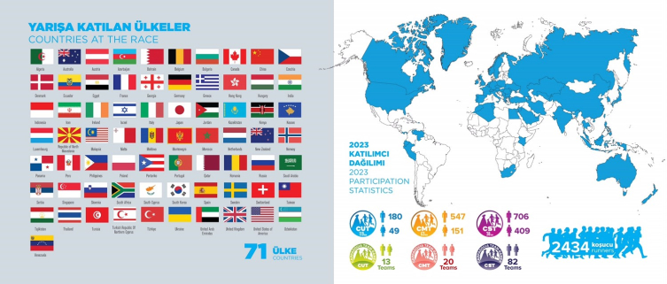 Kayıtları 4 Ekim tarihinde sona eren etkinliğe Arjantin’den Kanada’ya, Danimarka’dan Japonya’ya, Filipinler’den Amerika’ya 71 ülkeden 2 bin 434 koşucu kayıt yaptırdı.