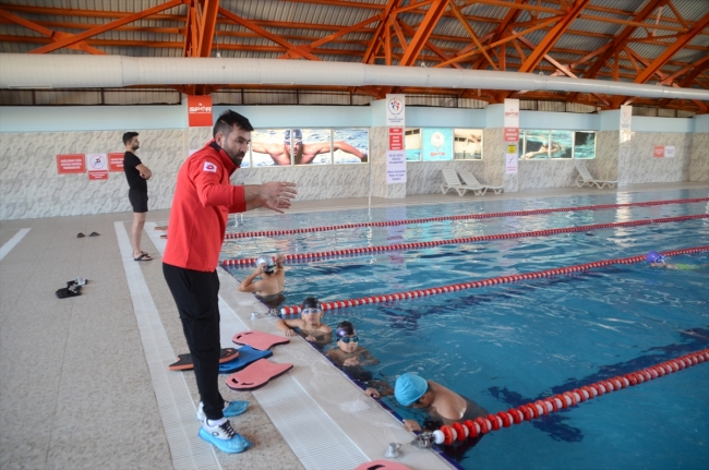 Gençlik ve Spor İl Müdürlüğü bünyesindeki sporcular da ilçede açılan yüzme havuzunun ılık suyunda antrenman yapıyor.