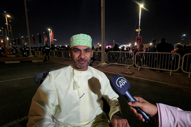 Ummanlı engelli taraftar Ekrem bin Yusuf el-Muavvili, Katar'a dün oynanan ve üçüncüyü belirleyecek olan Fas-Hırvatistan müsabakasını izlemek için geldiğini söyledi.
