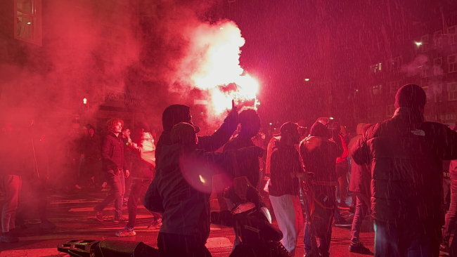 Faslı gençlerin, araçların üzerine çıkarak dans etmesi, toplu taşımayı engellemesi ve çok sayıda ses bombası kullanması üzerine polis aracından, "meydanın boşaltılmaması halinde müdahale edeceği" anonsu yapıldı.