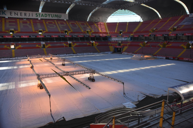 [Fotoğraf: DHA]Lider Fenerbahçe ile ligde son 7 haftada 6 galibiyet, 1 beraberlik alarak seri yakalayan ve kendi sahasında namağlup yoluna devam eden Kayserispor'u karşı karşıya getirecek olan mücadele öncesi stadyum hazır hale getirildi.