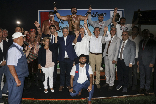 [Fotoğraf: AA]Başpehlivanlık güreşlerinde ise 19 sporcu kol bağladı. Finalde Hasan Cengiz ve Nedim Gürel karşılaştı. İki tecrübeli pehlivanın birbirini tartmasıyla geçen ilk dakikalar kıran kırana mücadeleye dönüştü. Güreşler hava kararana dek devam etti.