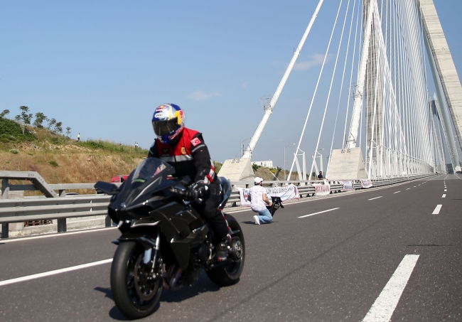 Daha sonra köprüde hız denemesi yapan ve saatte 350 kilometre hıza ulaşan ve bu anlamda rekor kıran Sofuoğlu'na, katılımından dolayı teşekkür plaketi sunuldu.