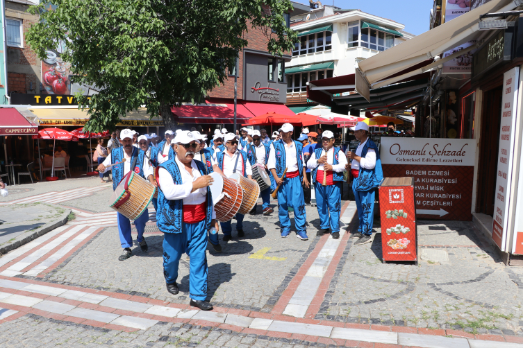 Edirne Sarayiçi Er Meydanı'nda 7-9 Temmuz tarihlerinde gerçekleşecek 662. Kırkpınar Yağlı Güreşleri'nde görev yapacak davul zurna ekibi, geleneksel kıyafetleriyle kentin cadde ve sokaklarında geziyor.