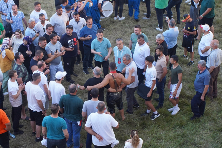 Zeybek'in taraftarları da Antalya yöresinin sevilen ezgilerinden "Cezayir Türküsü" ile dans etti. Yusuf Can Zeybek, doping kontrolü sonrası "pehlivan hamamı" ritüeli için hamama gidecek.