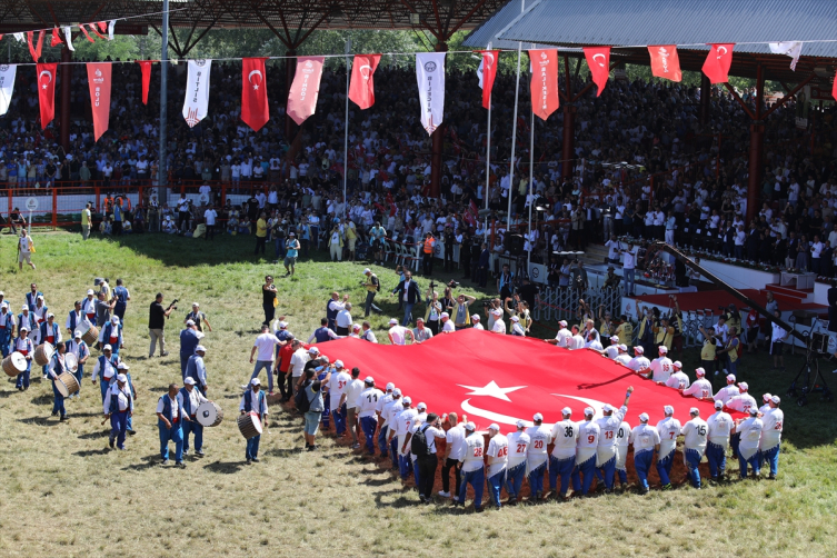 Edirne'de 662. tarihi Kırkpınar Yağlı Güreşleri'nde bir gelenek daha unutulmadı. Her yıl vatanı koruyan Türk askeri, polisi, Jandarma ve güvenlik güçleri ile şehitler anısına açılan dev Türk bayrağı, bu yıl da açıldı.