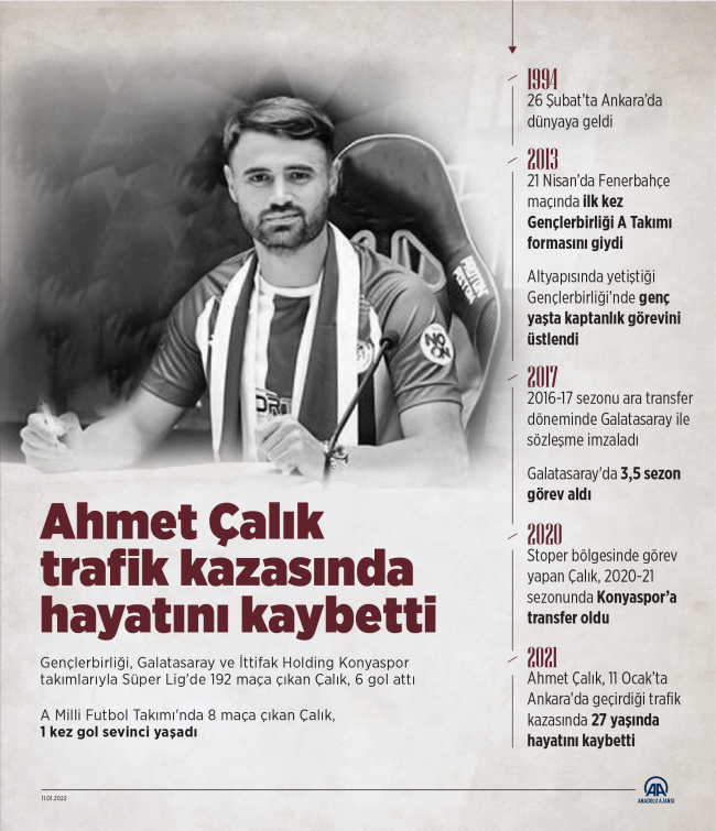 Konyaspor'un geçirdiği kaza sonucu yaşamını yitiren genç futbolcusu Ahmet Çalık'ın cenazesi Ankara Elmadağ Sungur Camii'nde ikindi namazını müteakiben kılınan cenaze namazı sonrası Elmadağ Mezarlığı’ndaki aile kabristanına defnedildi.
