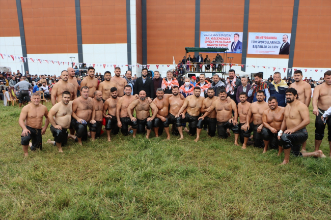 [Fotoğraf: AA]Başpehlivanlık final müsabakasında Faruk Akkoyun'u yenen Mustafa Taş, başpehlivan oldu.