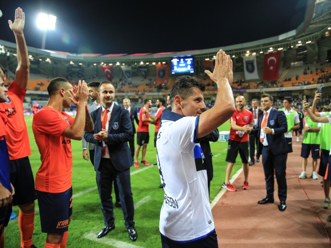 Medipol Başakşehirli futbolcular, karşılaşma sonrasında saha içinde büyük sevinç yaşadı.