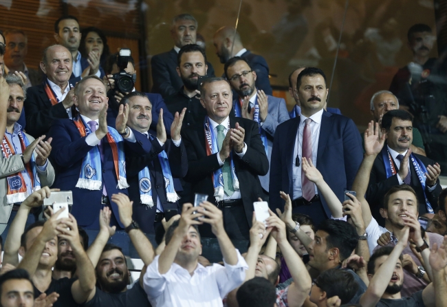 Taraftarlar, pankart açıldıktan sonra uzun süre "Recep Tayyip Erdoğan" tezahüratı yaparak, Cumhurbaşkanına sevgi gösterisinde bulundu.