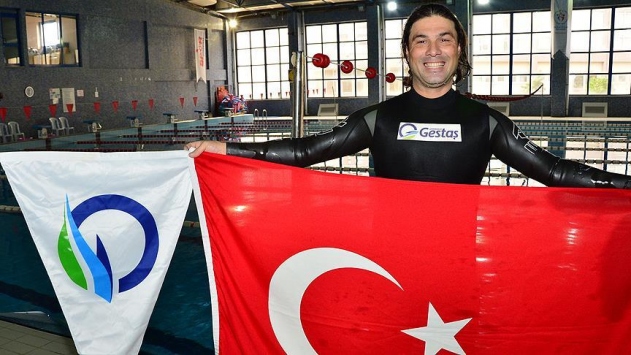 Su altı ve üstünden çok sayıda kamerayla görüntülenen denemede milli sporcu Aydın, geçen yıl kırdığı rekoru, 2 dakika 15 saniyede 82,57 metre yürüyerek geliştirdi.