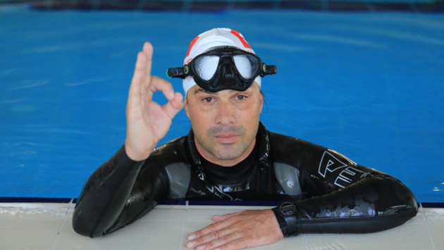 Geçen yıl 79.93 metrelik dereceyle Su Altında Tek Nefeste En Uzun Mesafe Yürüme Dünya Rekoru'nun sahibi olan Sertan Aydın, bu yıl yeni bir rekora daha imza atmaya hazırlanıyor. Su Altında Tek Nefeste En Uzun Mesafe Yürüme Dünya Rekoru'nun sahibi olan Sertan Aydın, bu sefer de Su Altında Tek Nefeste En Uzun Mesafe Yüzme rekorunu kırmaya hazırlanıyor.
