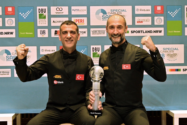 Gençlik ve Spor Bakanı Mehmet Muharrem Kasapoğlu, Milli Takımlar Dünya 3 Bant Bilardo Şampiyonası'nda şampiyonluğa ulaşan Semih Saygıner ve Tayfun Taşdemir'den oluşan milli takımı kutladı.